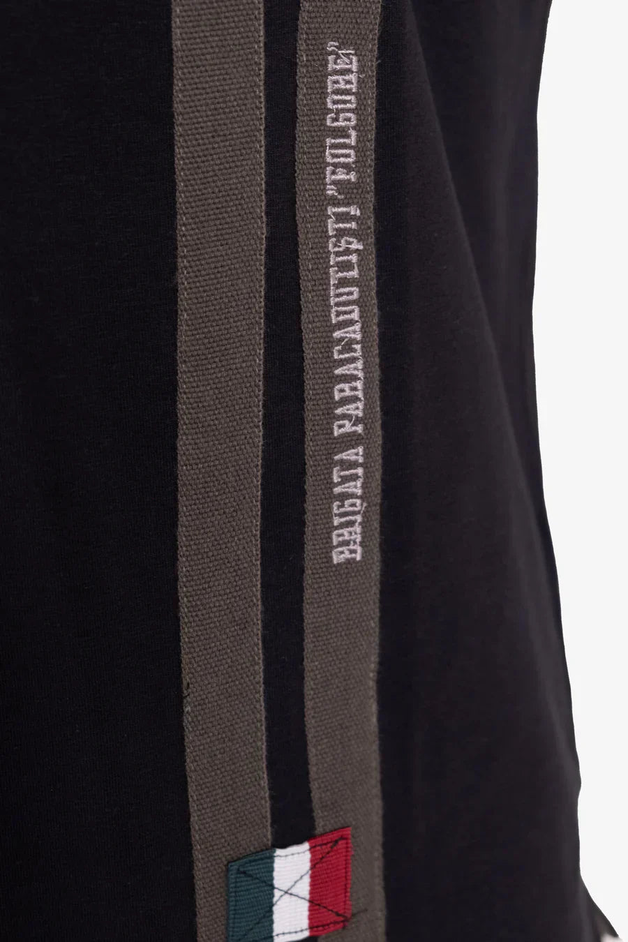 Cotton jersey polo shirt, with collar and placket. Contrasting details, patches and embroidery 183rd Reggimento Paracadutisti 'Nembo'. Embroidered logo on canvas patch, with burnished metal star, positioned on the left sleeve.