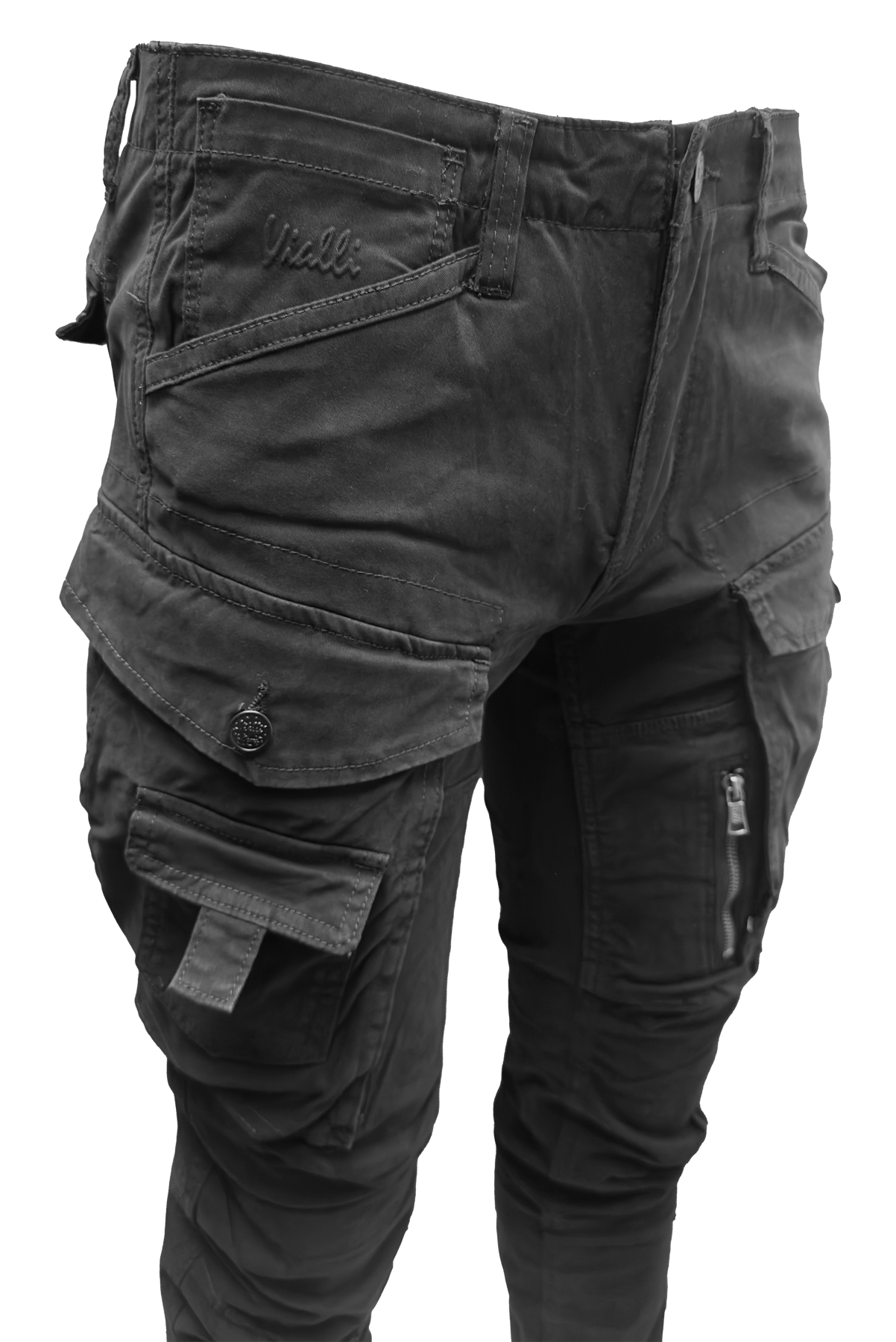 Expertly crafted from cotton and spandex, the Vialli Brad Cargo Pants provide both comfort and style. With four traditional pockets and four additional pockets on the legs, these pants offer ample storage space. The belt loops, button down and zip-fly closure add functionality, while the embroidered coin pocket and tassels at the bottom add a touch of unique detail.
