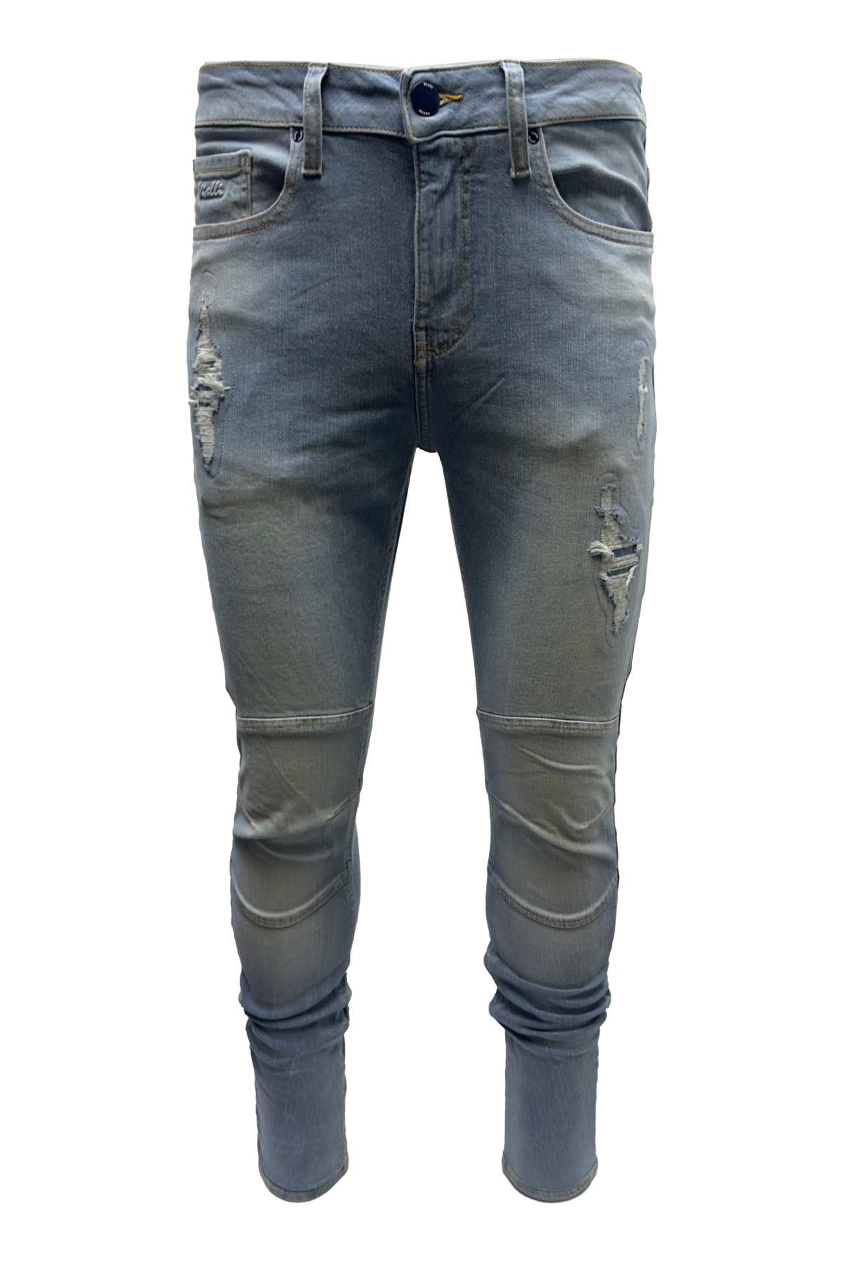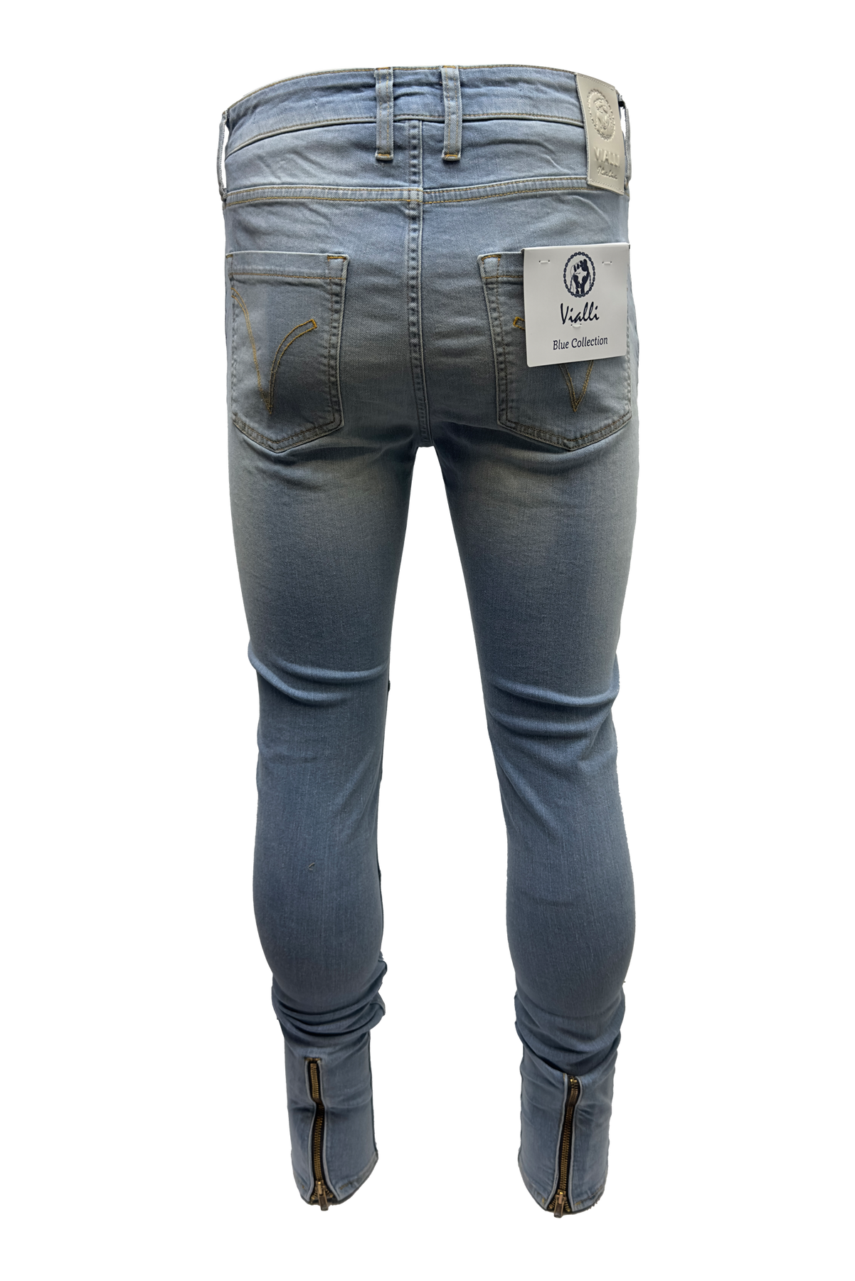 Introducing the Itessarok Ultra-Fit Jean from Vialli's Blue Collection. Embrace the summer in these traditional four pocket jeans with an embroidered coin pocket and Vialli tag at the back. Made of cotton and elastane, they offer both comfort and style with rips and tears on the front. Upgrade your wardrobe with this perfect combination of form and function.
