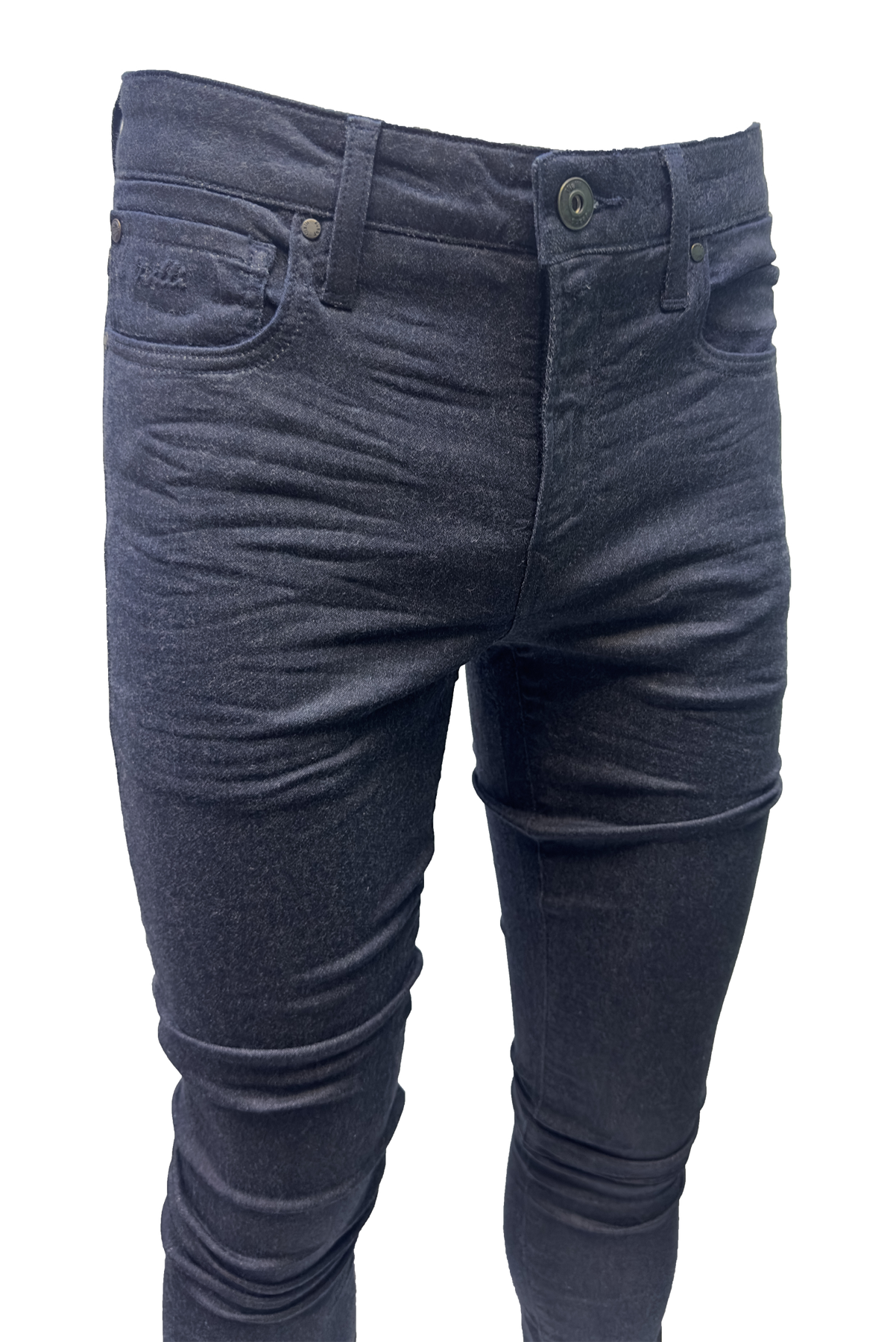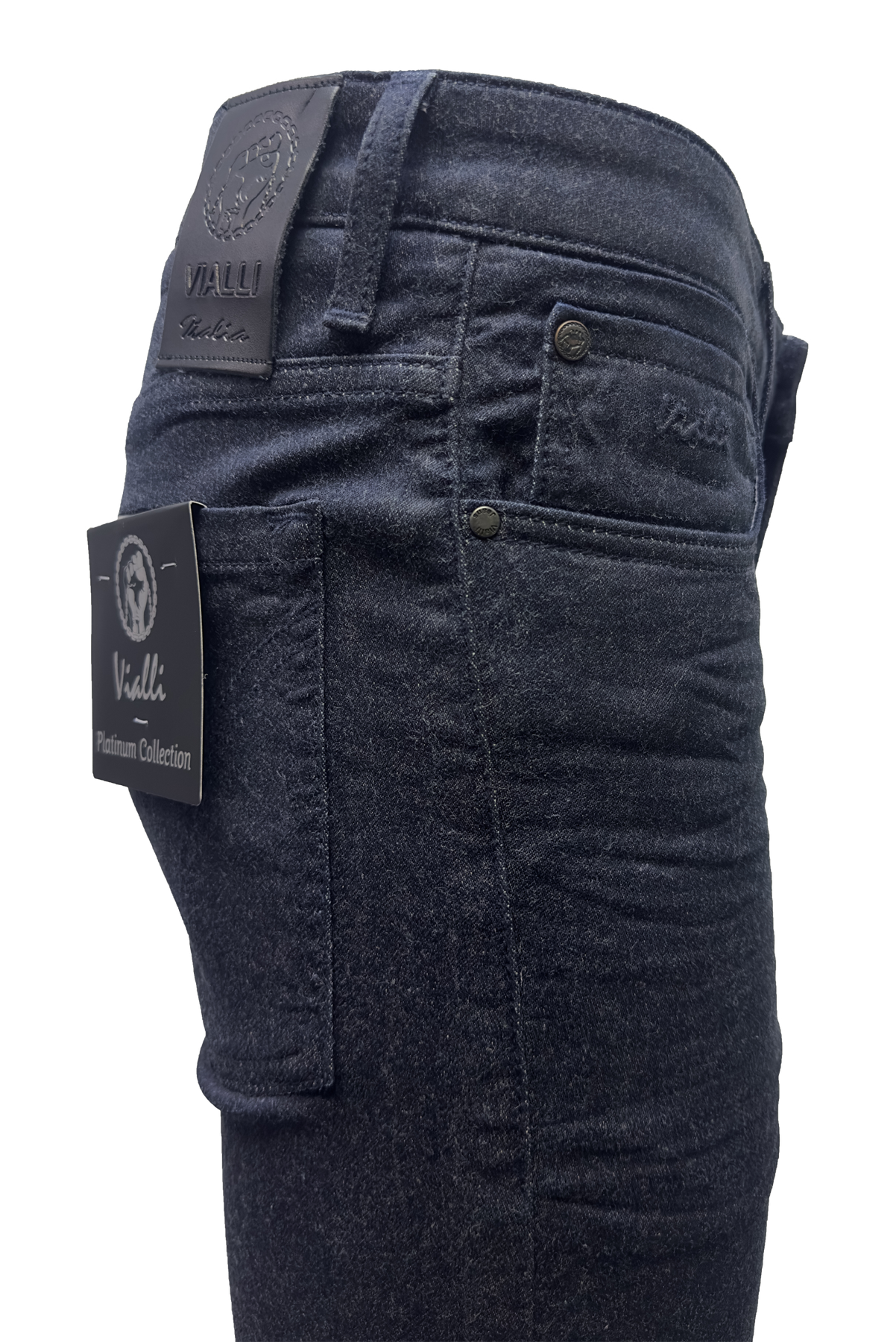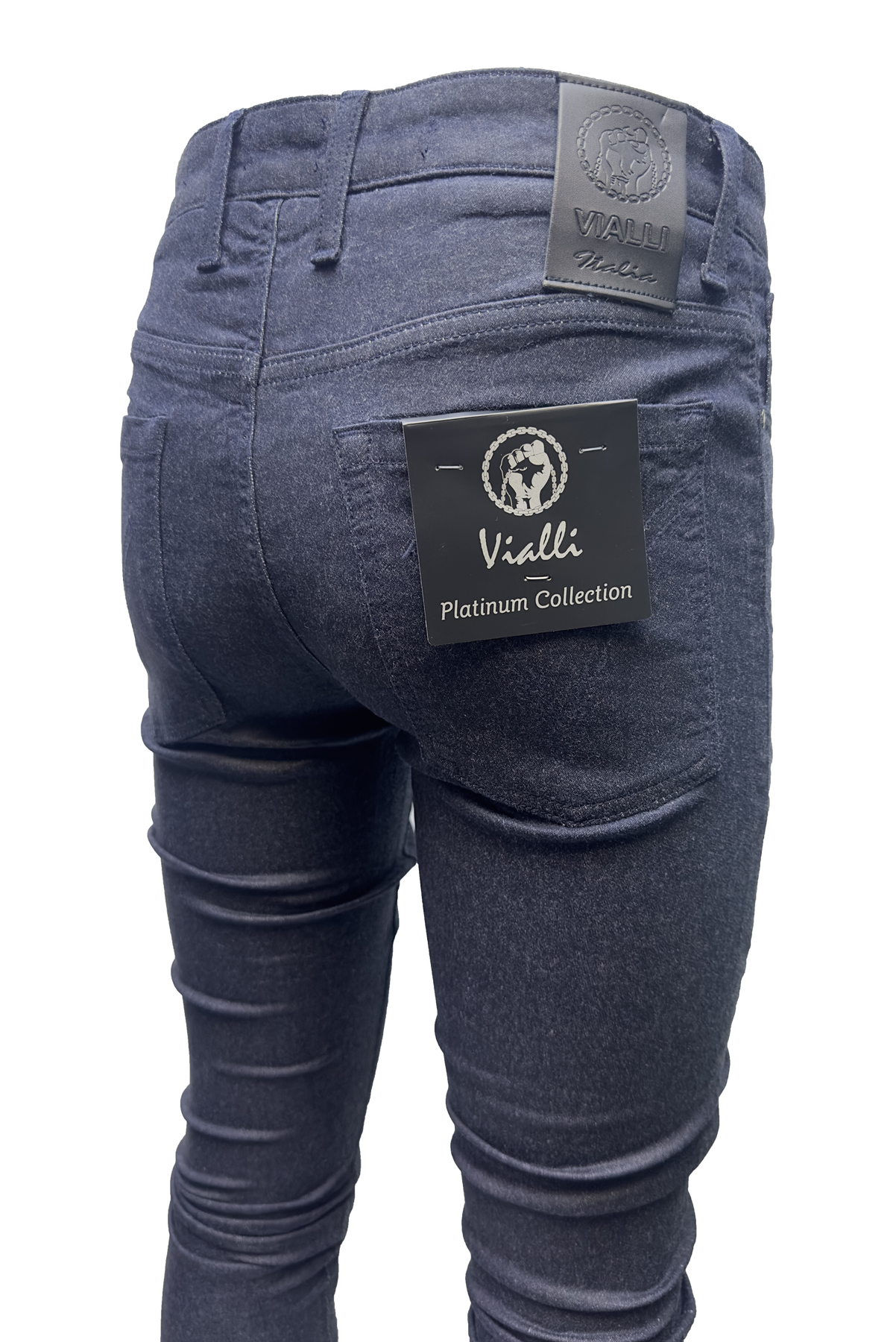 Introducing the Vialli Jaakha Scheletrico Skinny Jean from our Winter Collection. Made with a blend of cotton and spandex, this jean offers comfort and stretch while maintaining its sleek shape. This Platinum Collection piece features the traditional four pocket design and a branded coin pocket, along with belt loops, button and zip-fly closure. Finished with a black Vialli tag at the back and subtle dust-like speckles, this jean is a must-have staple for any wardrobe.