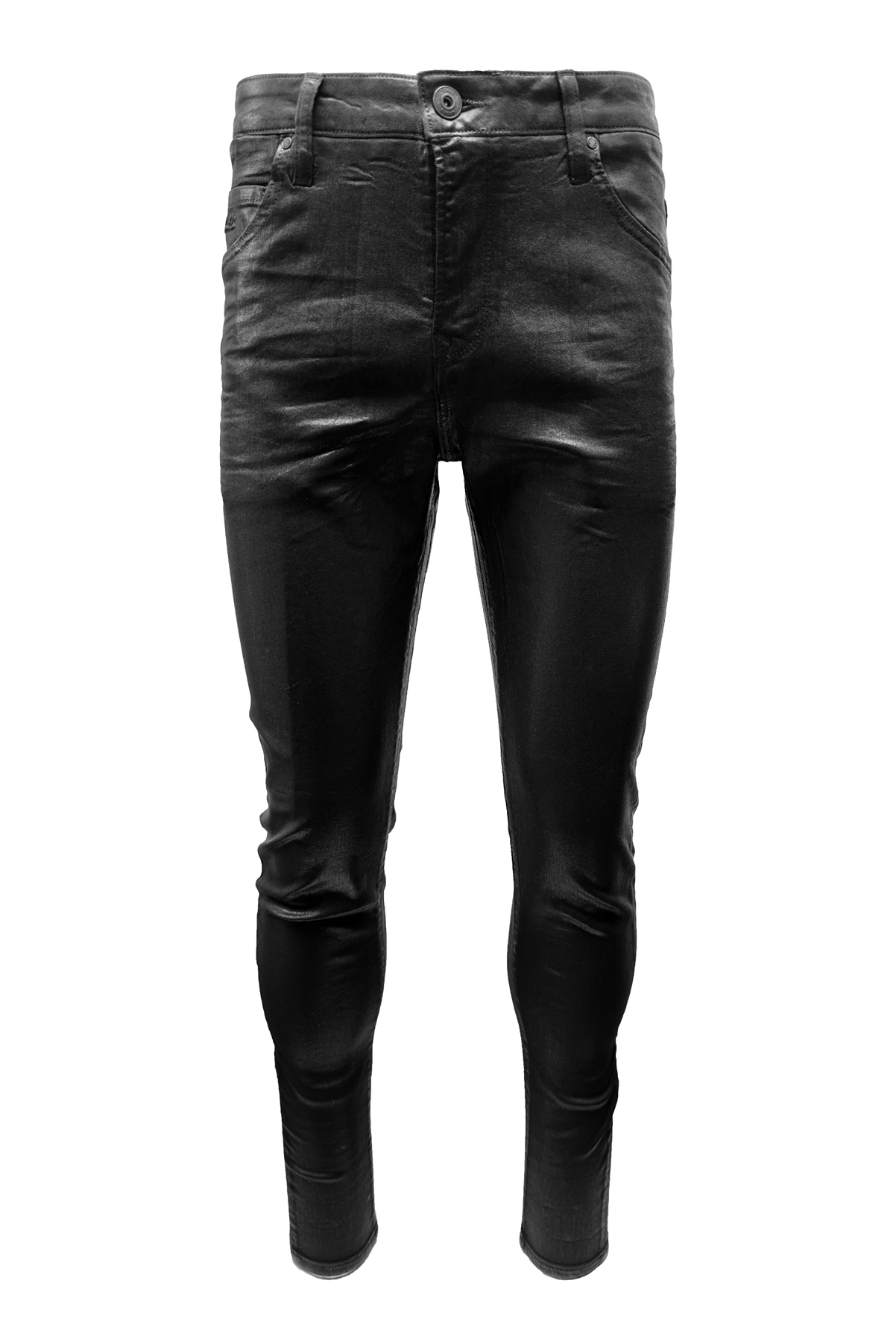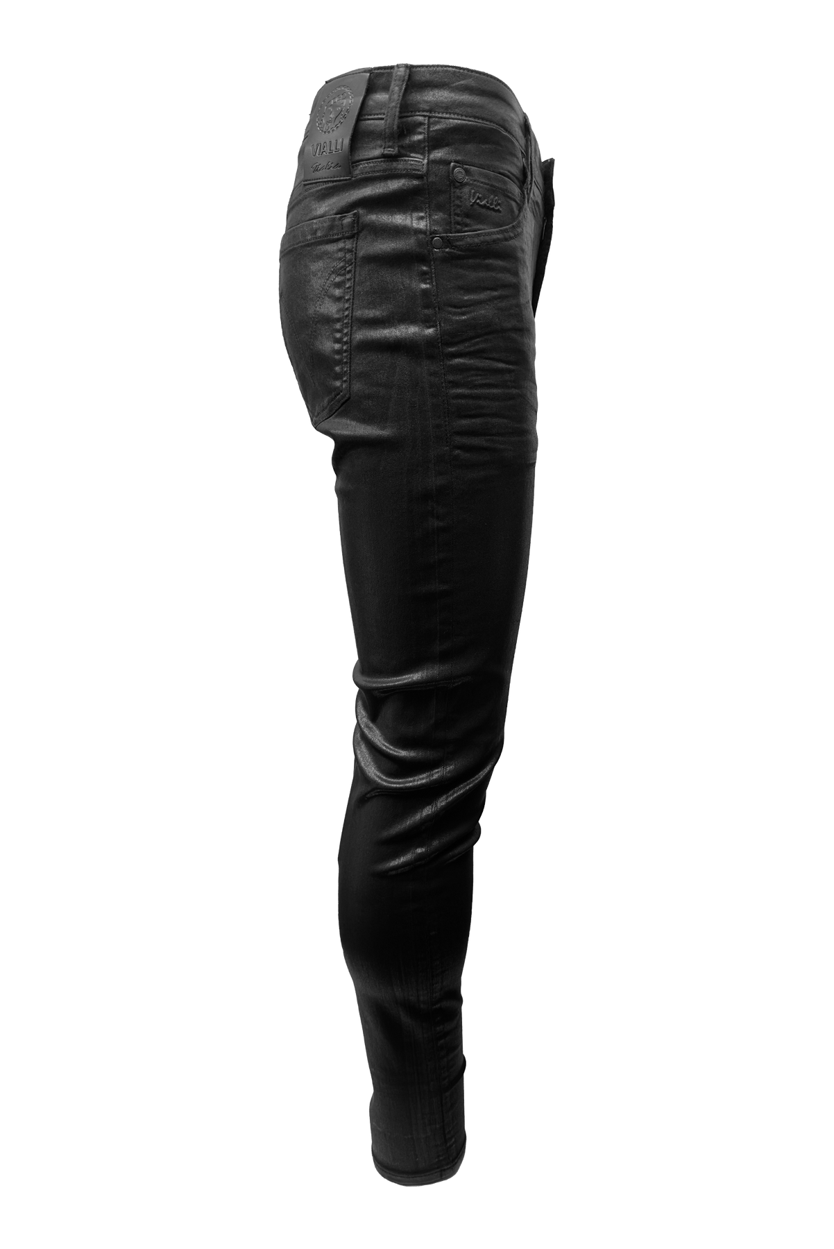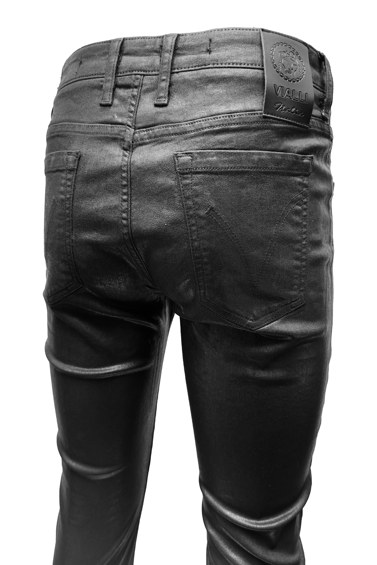 The Vialli Jelly Wax Ultra-Fit jean features a wax coating for a sleek look and is made with a comfortable blend of cotton, polyester, and spandex. Its traditional four pocket design includes a debossed coin pocket and it is secured with a zip-fly and button closure. Part of the Platinum Collection.