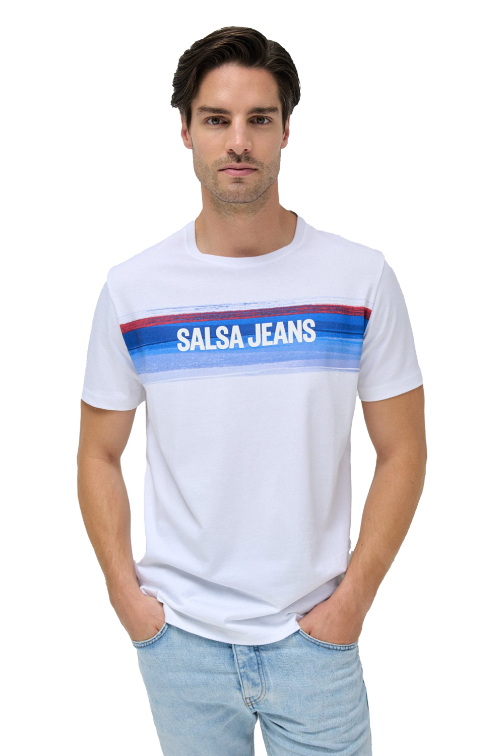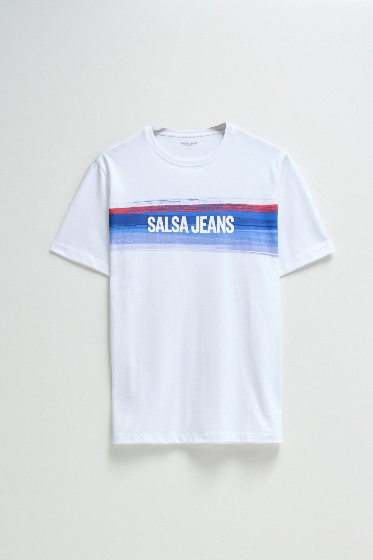 Expertly crafted from 100% cotton fabric, this slim fit t-shirt is designed for comfort and style. The vibrant green color is elevated by a gradient print on the front, adding a unique touch to this classic round-neck shirt. Perfect for any casual occasion and proudly branded with our logo.