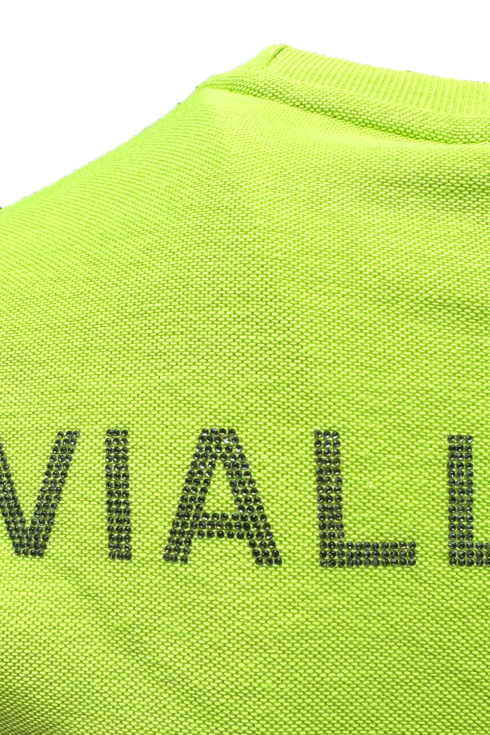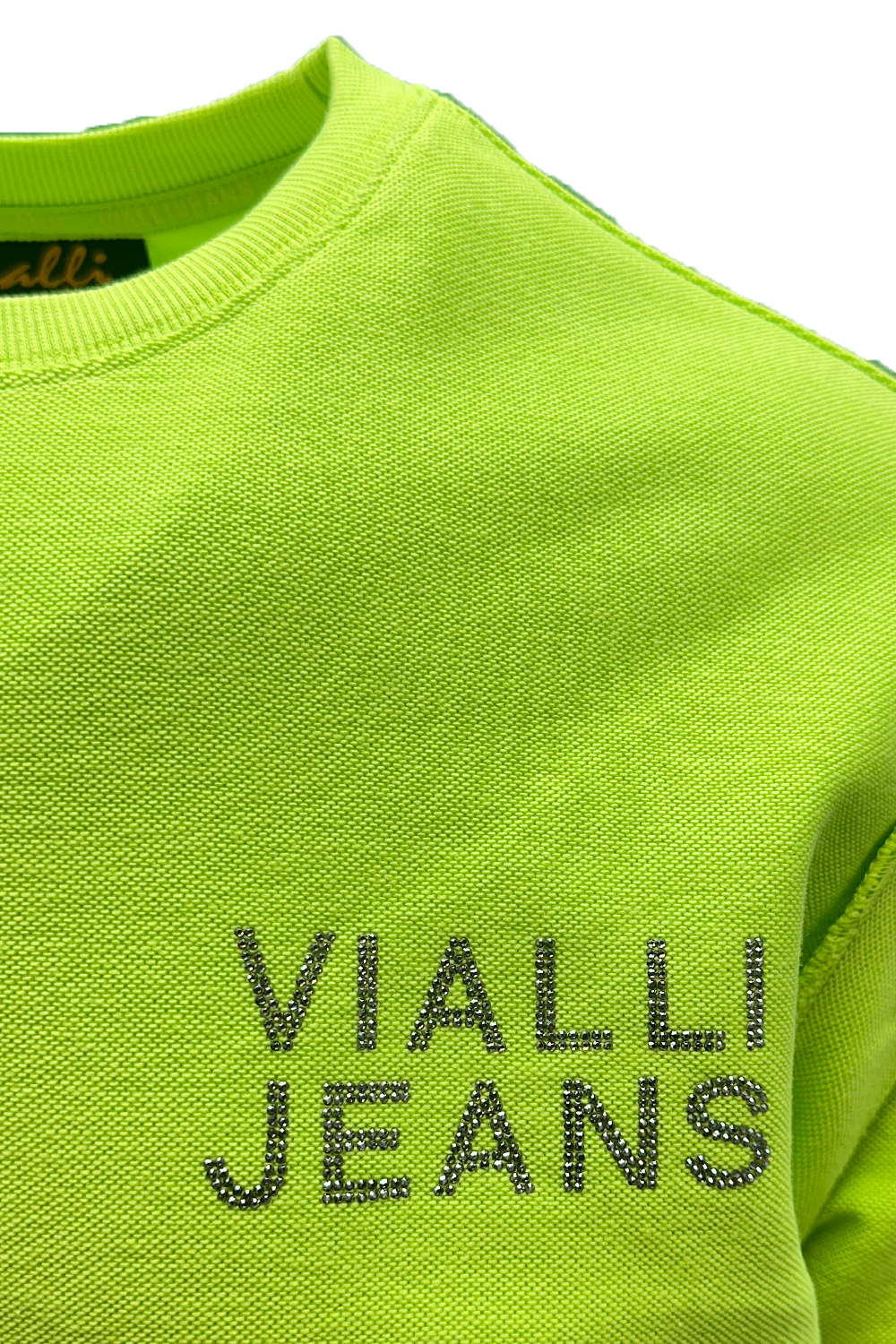 Unleash your inner environmentalist with the Vialli Go-Green Sweatshirt. Made with 100% cotton, this long sleeve shirt features cuffed sleeves, a round neck, and stunning Vialli beadwork on the front and back. Stay stylish and sustainable at the same time with this lime-colored sweatshirt.