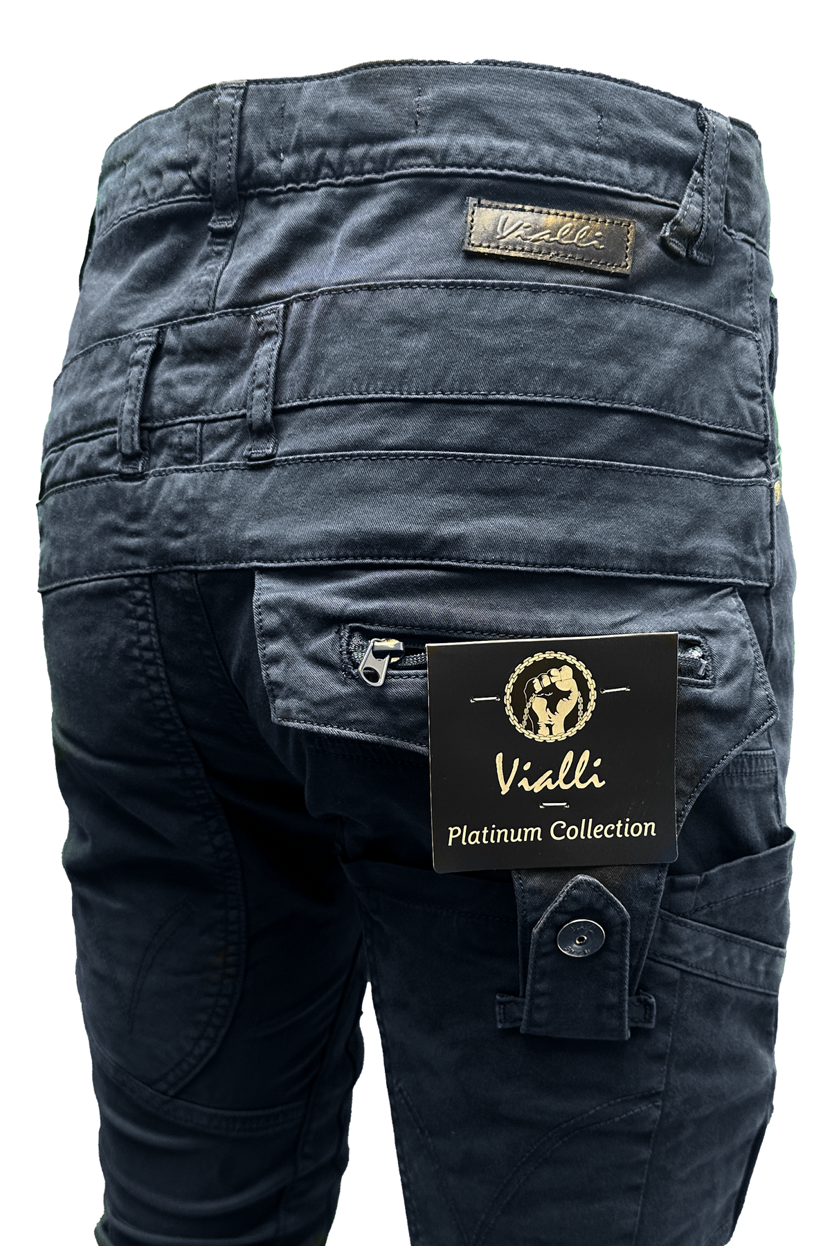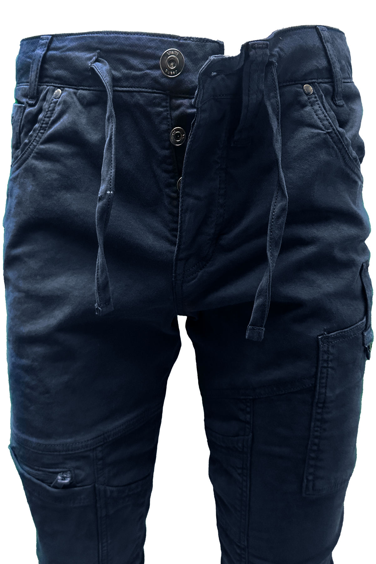Introducing our Vialli Ranger Cargo Pants in Navy. Made with 98% cotton and 2% spandex, these pants offer supreme comfort and durability. With multiple pockets, belt loops, and drawstrings, they are perfect for any outdoor adventure. Part of our Platinum Collection, they are a must-have for your Winter Collection. Expertly designed for style and functionality.